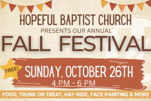 Our annual Fall Festival will be on October 26th. We will have food, inflatables, hay rides, and trunks set up ...