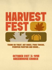Join us October 31st for Harvest Fest – a fall festival that’s safe for the whole family, hosted at Greenhouse ...