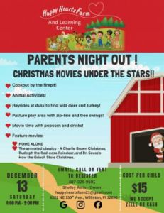 Drop the kids off and parents get out for a well-deserved date night! • Cookout by the firepit • Animal activities • Hayrides ...